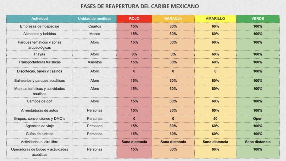 Desde el 8 de junio, el Caribe mexicano ha comenzado a recibir turistas de diversas partes del mundo. Gracias al trabajo conjunto del gobierno del estado, el Consejo de Promoción Turística, la iniciativa privada y proveedores de servicios turísticos, han reabierto de manera exitosa las puertas al turismo, siempre con especial atención a las medidas de higiene para proteger a los viajeros y a la población, considerando la salud la prioridad absoluta.