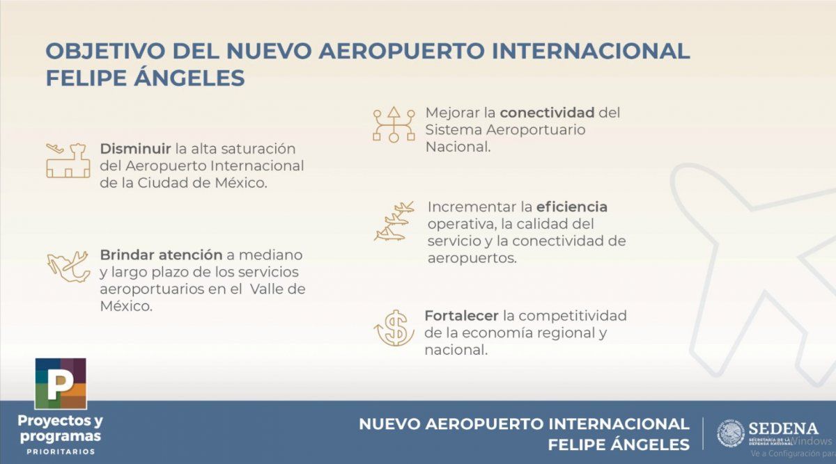 La primera etapa estará lista en 2021. Con este proyecto, las remodelaciones y ampliaciones de los aeropuertos de la Ciudad de México y Toluca, la administración AMLO espera resolver el problema de la saturación en la Zona Metropolitana de una forma ordenada, austera y con la capacidad técnica de los ingenieros de la Sedena.